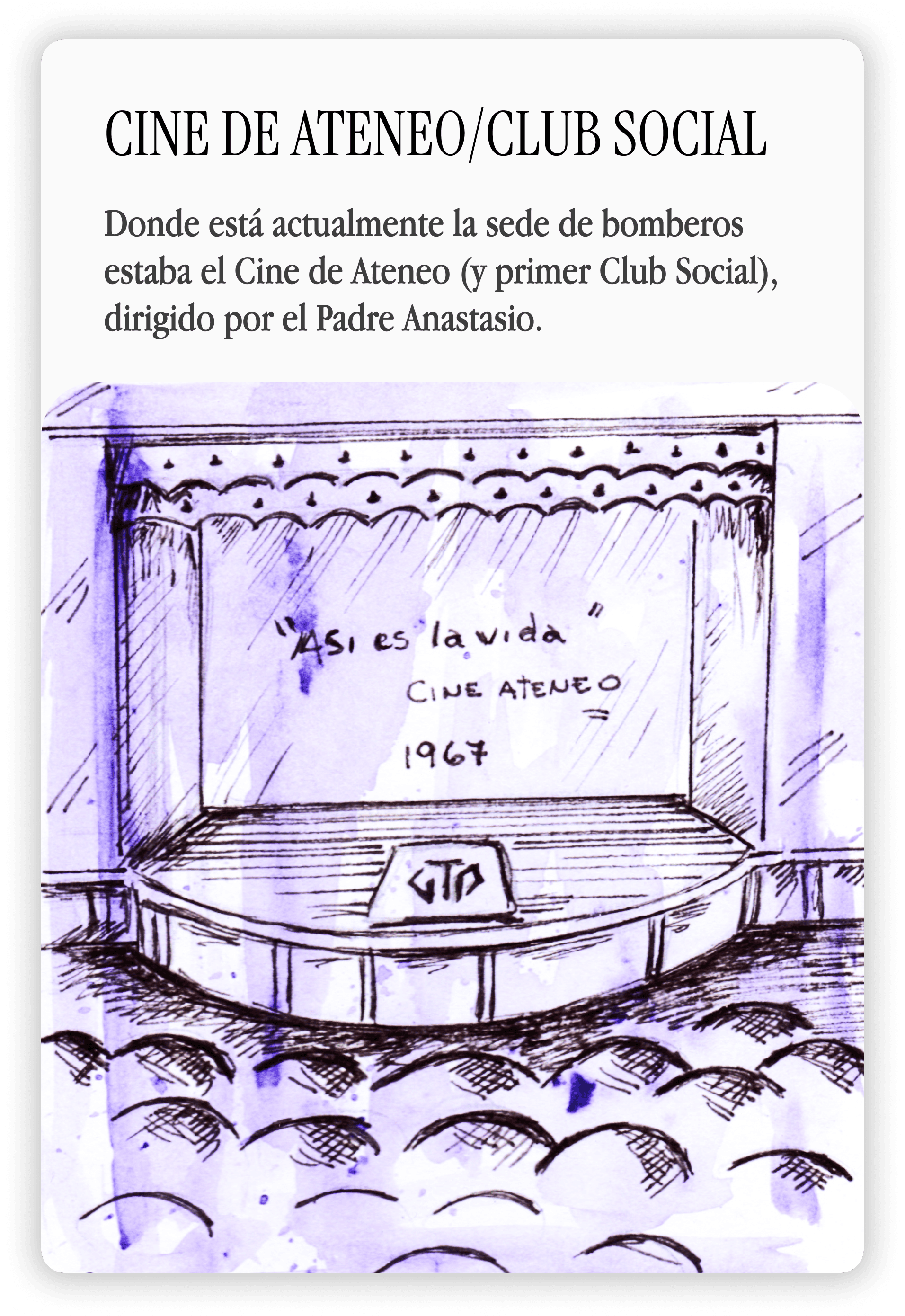 Donde está actualmente la sede de bomberos estaba el Cine de Ateneo (y primer Club Social), dirigido por el Padre Anastasio.
